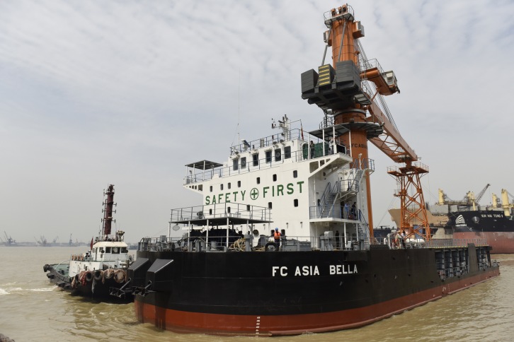 The newly-built MKS self-propelled floating crane returned with flying colors at 13:18 p.m. on April 24 after the four days’ sea trial.