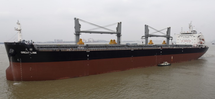 M.V. Great Link, the No.51 64K bulk carrier departed from Chengxi after completion at 15:28 p.m. on Jan.12, 2016.