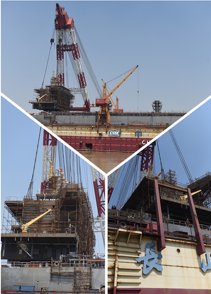 The No.3 38,800 DWT bulk carrier had the accommodation lifted and installed at 8:00 a.m. on March 28, well prepared for the outfitting as scheduled.