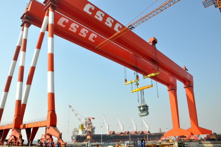 7 April 2016 Yangzhou Newbuilding Branch, March 28: The No.36 64K bulk carrier had the integrated lifting and installation of the main engine completed in slipway of Yangzhou Newbuilding Branch. Chengxi Shipyard Co., Ltd. press release