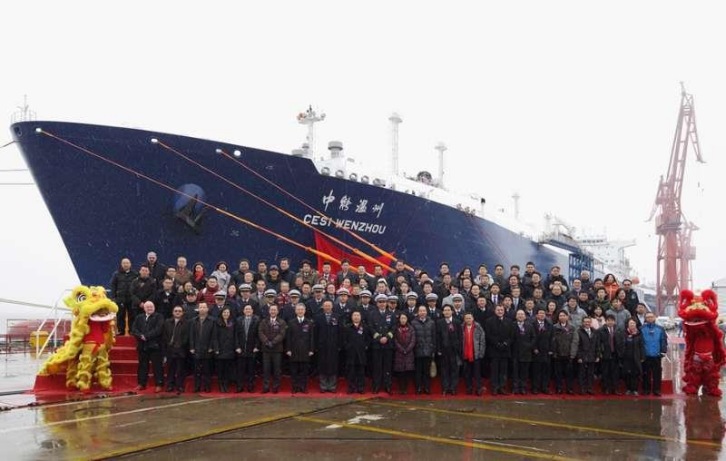 31 January 2018 On the morning of January 25th, 2018, a naming and vessel delivery ceremony was held for the LNG carrier CESI WENZHOU by Shanghai LNG, a subsidiary of COSCO SHIPPING Energy, Sinopec Kantons Holdings Limited and Mitsui O.S.K. Lines, Ltd. Ms. Liu Qian, Deputy General Manager of Transport Finance Department of the Export-Import Bank of China named the vessel and cut her cable. Executives and guests from Sinopec, Mitsui O.S.K. Lines, CSSC, the Export-Import Bank of China and related Classification societies attended the event as well. With a length of 290 meters and a designed draft of 11.7 meters, CESI WENZHOU can carry up to 174,000 m³of LNG per voyage. It is fitted with DFDE and now is one of the world’s most advanced and environmentally friendly LNG carriers. As the fifth of six vessels delivered for the AP LNG Project, CESI WENZHOU is estimated to carry more than one million tons per year and will provide services from Australia to China’s coastal ports, effectively guaranteeing the energy supply to coastal areas in China. CESI WENZHOU is the eighth LNG vessel put into operation by Shanghai LNG, and the sixteenth LNG vessel by COSCO SHIPPING Energy. Another 22 LNG vessels of COSCO SHIPPING Energy will be delivered before the year of 2020.