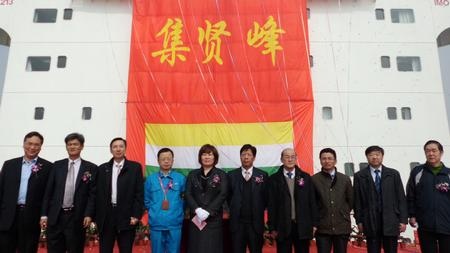 On the morning of March 16, the 8th 77K class bulk carried the “Ji Xian Feng”, built by Jiang Nan Shipbuilding Group was named and delivered. Deputy Gm of China Shipping International Trading Wang Ning, General Engineer of Jiang Nan Shipping building Hu Keyi, GM of China Classification Society Guangzhou Branch Tan Haoxiu, GM of China Shipping Classification Shanghai Branch Li Hua participated in the ceremony. The specially invited guest, Ms. Lu Xiaohong, wife of Tan Haoxiu, named the vessel. After the naming ceremony, the signing ceremony of the delivery of the ship was held in the PU DONG AMARA hotel.