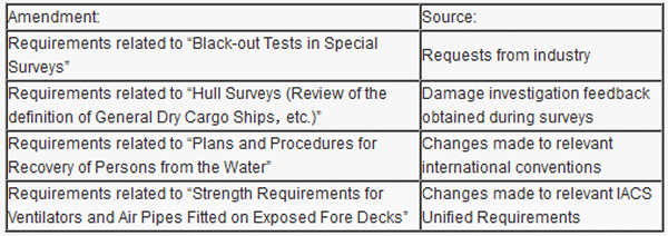 ClassNK continuously reviews, updates, and amends its technical rules and guidance as part of its ongoing efforts to improve the safety of life and property at sea, and to protect the marine environment. The Rules and Guidance are amended regularly in order to reflect the latest research results from damage investigations as well as changes made to relevant international conventions, IACS Unified Requirements, national regulations, and requests from the maritime industry. The amendments, dated 30 June 2014, include the following: