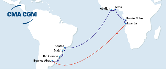 This new call in Tema will allow the CMA CGM Group to offer a direct service to the Ghanaian market from South America East Coast as well as improve service to Benin and Niger through Cotonou gateway thanks to an efficient transshipment in Tema: Santos Tema : 13 days Buenos Aires Tema : 19 days Santos Cotonou : 15 days Buenos Aires Cotonou : 21 days