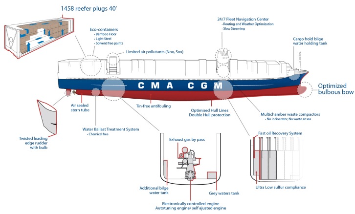9,400 to 10,900 TEUs class, enters the CMA CGM fleet Tuesday, December 23, 2014 • A vessel equipped with the latest environmental technologies • A high capacity in Reefer plugs