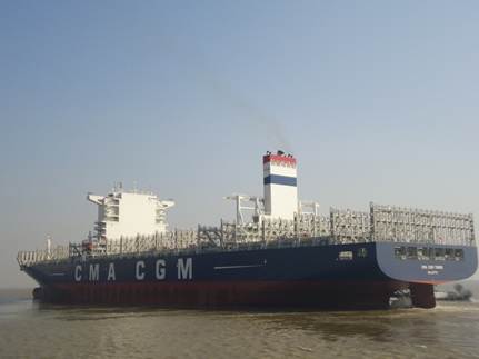 The CMA CGM LITANI (10,622 TEUs) is the third of a series of 28 vessels from 9,400 TEUs to 10,900 TEUs, vessels which will be delivered from now to the third quarter of 2016. Last June, the Group received the delivery of the first vessel of this series: the CMA CGM DANUBE. Each vessel of this one-of-a-kind series will be named after a famous river of the world. The CMA CGM TIGRIS will be a chartered bareboat sailing under the Malta flag, and the result of collaboration between the Chinese shipyards NTS (New Times Shipbuildings, Jiangsu Province, People’s Republic of China), CIMC group and the CMA CGM Group experts. The vessel, built within about 10 month since her keel was laid and delivered on-time, shows - once again since the CMA CGM LITANI delivery on December 3rd, which was the first CMA CGM Group’s vessel from those shipyards - NTS shipyards’ construction proficiency. 300m in length and 48m in width, it was designed to offer maximal loading capacity. With a capacity of 1458 reefer plugs 40’, which is the largest so far on such a ship, the CMA CGM TIGRIS embodies the Group’s ambition to be a leader in this growing market. The CMA CGM TIGRIS will be positioned on the SEAS2 Line, and operated on the following rotation: Shanghai, Ningbo, Chiwan, Hong Kong, Singapore, Port Kelang, Santos, Paranagua, Buenos Aires, Montevideo, Rio Grande, Itapoa, Santos, Durban, Port Kelang, Singapore, Hong Kong and Shanghai.