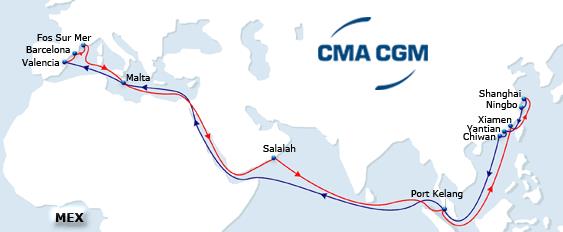 • On February 14th, the CMA CGM URAL joined the Mediterranean Club Express (MEX). She will call Shanghai, Ningbao, Yantian, Chiwan, Port Kelang, Malta, Valencia, Barcelona, Fos sur Mer, Malta, Salalah, Port Kelang, Xiamen, and Shanghai.