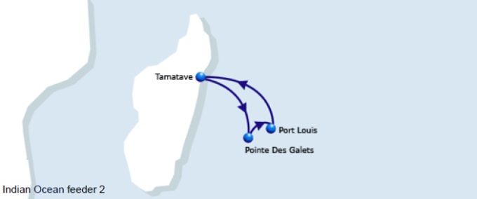 INDIAN OCEAN FEEDER 2, weekly service dedicated to Tamatave Port coverage | Pointe des Galets – Port Louis – Tamatave – Pointe des Galets
