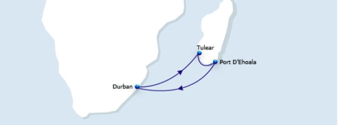 INDIAN OCEAN FEEDER 5 is dedicated to South Madagascar via South Africa hub Port coverage | Durban – Port d'Ehoala – Tulear – Durban