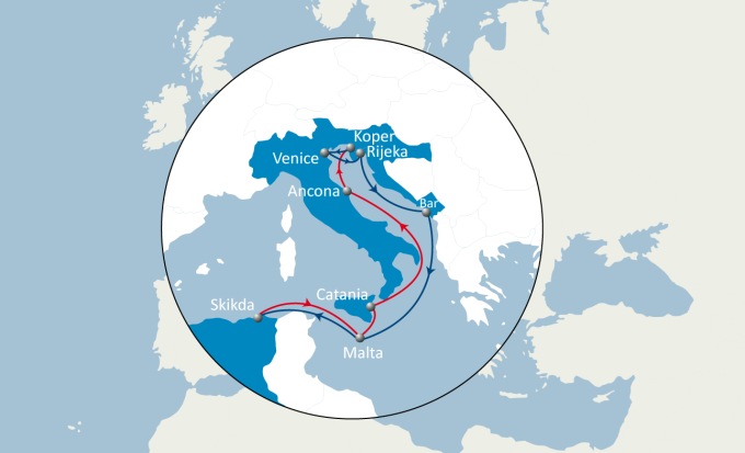 CMA CGM launches ADRINAF, the first direct service between the Adriatic Sea and Algeria May 15, 2019 • A unique weekly service offering connections to the rest of the world • CMA CGM reaffirms its commitment to the Port of Malta, its hub in the Mediterranean Sea The CMA CGM Group, a world leader in shipping and logistics, is pleased to announce the launch on May 13th of its new short sea service: ADRINAF The first direct service between the Adriatic Sea and Algeria With this weekly service, the Group is offering the first direct connection between the Adriatic Sea and Algeria. It thus opens up new development opportunities for its customers located in Central and Eastern Europe thanks to rail and road intermodal solutions, mainly via Koper. It also allows connections to the rest of the world via its port hub in Malta, thus reaffirming its local commitment and its desire to develop it. CMA CGM densifies its regional network With the ADRINAF service, the Group reinforces its intra-Europe and Mediterranean “CMA GM short sea” offer, which is comprised of 33 services operating 63 vessels and making over 300 calls per week. The Group also confirms its strategy aimed at densifying its regional network. ADRINAF service • Rotation: Koper, Venice, Rijeka, Bar, Malta, Skikda, Malta, Catania, Ancona, Koper • Launch: May 13th, 2019 • Voyage duration: 21 days • 3 vessels of 1,300 TEU (Twenty-Foot Equivalent Units)