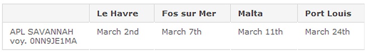CMA CGM to add Port Louis, Mauritius on its NEMO service connecting Europe with the Indian Ocean & Australia March 01, 2021 In a continuous effort to improve the service efficiency, reliability, competitiveness and commercial assets of its NEMO service connecting Europe with the Indian Ocean & Australia, CMA-CGM is pleased to announce the return of Port Louis, Mauritius call on the rotation, adding a second call in the Indian Ocean region after Pointe des Galets, Reunion call. This addition will be effective as from m/v APL SAVANNAH voy. 0NN9JE1MA (ETD Le Havre on March 2nd, 2021). Schedule will be as follows: