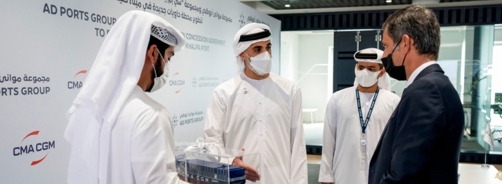 Abu Dhabi, UAE - September 9, 2021 • A state-of-the-art terminal with a capacity of 1.8 million TEUs to open in 2024. • An investment of AED 570 million (USD 154 million) in the new terminal. • Khalifa Port becomes a regional hub for Three of World's Top Four shipping companies. Abu Dhabi Ports, the region's premier facilitator of logistics, industry, and trade, and France-based CMA CGM Group, a world leader in shipping and logistics today announced the signing of a 35-year concession agreement. Under the terms of the agreement, a new terminal will be established in Khalifa Port, the first semi-automated container port in the GCC region, which will be managed by a joint venture owned by CMA CGM's subsidiary CMA Terminals (with a 70 percent stake) and Abu Dhabi Ports (30 percent stake). The partners are expected to commit approximately AED 570 million (USD 154 million) to the project. A state-of-the-art terminal to accompany the growth of Khalifa Port With construction starting in 2021, the new terminal is set to be handed over in 2024 with, in phase 1, an initial quay length of 800 metres and an estimated annual capacity of 1.8 million TEUs. Abu Dhabi Ports will be responsible for developing a wide range of supporting marine works and infrastructure. This includes up to a total of 1,200 metres of quay wall, a 3,800-meter breakwater, full built-out rail platform, and 700,000sqm of terminal yard. The terminal will provide CMA CGM with a new regional hub and will enable the Group to develop its service offering between Abu Dhabi and South Asia, Western Asia, East Africa, Europe and the Mediterranean as well as the Middle East and the Indian Sub-Continent. With this major investment, the CMA CGM Group pushes ahead with its global expansion strategy as a leading terminal operator. The Group currently operates 49 port terminals in 27 countries via its subsidiaries CMA Terminals and Terminal Link. Khalifa Port, a hub for three of the world's top four shipping companies. CMA CGM Group is the third of the world's top-four shipping entities to join forces with Abu Dhabi's leading facilitator of trade, logistics and industry. The agreement confirms Khalifa Port's standing as one of only a few major ports in the world providing hubs for three of the world's top shipping lines, as well as serving as an instrumental part of the global maritime trade connecting markets from east to west.