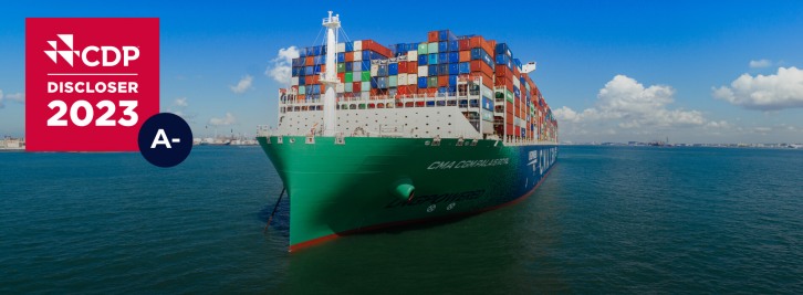 February 13, 2024 The CMA CGM Group has been awarded the A- score by the Carbon Disclosure Project (CDP) in its 2023 climate index. The Carbon Disclosure Project is one of the main environmental performance indicators of large-scale companies worldwide, followed by the majority of our customers and partners. This distinction highlights the significant progress made by the Group in the decarbonization of its shipping activities, as well as its leading role in accelerating the transition to a low-carbon transport and logistics industry. CMA CGM is one of the Top 19% of maritime players who have reached the Leadership level of the Carbon Disclosure Project this year (average rating of the sector: B). 2023 marked an acceleration of the CMA CGM Group's decarbonisation strategy with reinforced commitment and concrete actions: • The ambition to align with the high trajectory of the IMO: 30% by 2030 and 80% by 2040 • Substantial investments in new energy, asset modernization and innovation; • Reducing greenhouse gas emissions for maritime activities by 1 million tons between 2023 and 2022; • The implementation of incentives for its top management to achieve the climate objectives set.