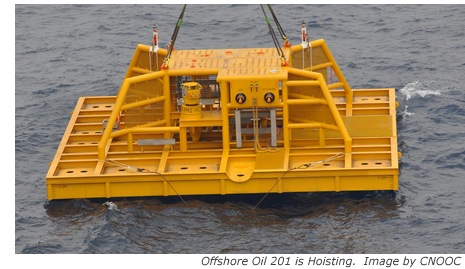 On March 17, deepwater pipe laying floating crane of COOEC –Offshore Oil 201 succeeded in PLEM-2 hoisting of Panyu 35-1/2 Project, with hoisting depth of 275 m and satisfactory position difference and angle difference. This is the first underwater basement hoisting installed independently by China.
