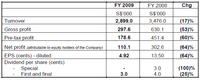 Group’s turnover fell 16.6% to $2.9 billion in FY 2009 on lower revenue across all