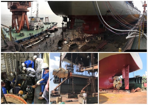 The first CPP (changing pitch propeller) conversion project has been completed by COSCO SHIPPING Shipyard (Nantong) Co.,Ltd. 5 November 2020 Recently, COSCO SHIPPING Shipyard (Nantong) Co.,Ltd. has successfully completed its first CPP (changing Pitch propeller) conversion project. Another cooperative project between Matson, Inc. and COSCO SHIPPING Shipyard (Nantong) Co.,Ltd. for ship repair business. Due to the increase of the line in the ice area, FPP (fixed- pitch propeller) was changed to CPP (changing pitch propeller) to ensure the forward and backward movement of the ship and the safe and stable operation of the ship under the condition of non-stop main engine and axis. The successful of the project strengthened the confidence of Matson, Inc. and COSCO SHIPPING Shipyard (Nantong) Co.,Ltd. in long-term cooperation, and also accumulated experience for the subsequent undertaking of related projects of the company.