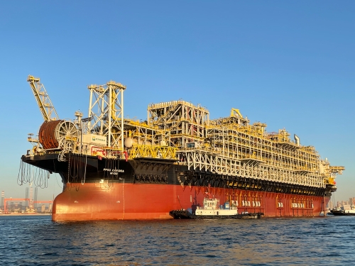 19 November 2020 On 13th November, The 10th FPSO MV30, coversioned by COSCO SHIPPING Heavy Industry (Dalian) Co.,Ltd., was officially delivered to MODEC. The FPSO MV30 is totally 332 meters long, 58 meters wide and 31 meters deep, with a displacement of 306,000 tons. As the world's newest FPSO, it integrates production processing, storage, unloading, personnel living and production command, and can accommodate 160 people working and living at the same time. The project can operate continuously in oil field for 26 years without docking for maintenance, which is a veritable "giant offshore oil processing factory". In 2020, due to the impact of COVID-19, the MV30 project will face many difficulties and challenges. COSCO SHIPPING Heavy Industry (Dalian) Co.,Ltd. actively negotiate with owner's communication, taking the form of "cloud office, cloud meeting" to overcome the outbreak, meet difficult problem, at the same time in accordance with the requirements of disease prevention and control, careful organization, planning personnel backflow, epidemic prevention, measures such as construction, reduce the epidemic affection, and finally ensure the timely delivery of the project.