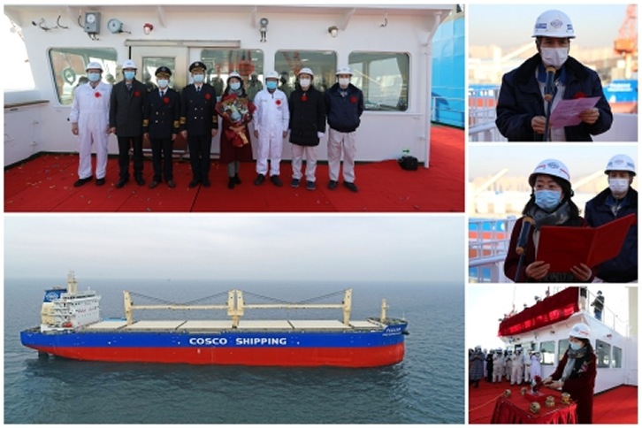 26 December 2020 The COSCO SHIPPING Development second 62K DWT multi-purpose pulp ship, named N1007, was delivered by COSCO SHIPPING Heavy Industry (Dalian) Co.,Ltd. on Dec. 21th. This ship is the tenth series multi-purpose pulp ship delivered by CHI (Dalian), which will be operated by COSCO SHIPPING Specialized after delivery. "Cosco Shipping Honor" is 201.8 meters long, 32.26 meters wide and 19.3 meters deep. It is hoisted under the Hong Kong flag and entered the China Classification Society. The ship is equipped with 6 cargo holds, 2-5 holds are one hatchcover plate for each hold, suitable for pulp, cargo holds are equipped with dehumidification system, to ensure the quality requirements in the process of transportation. The deck is equipped with 4 75T cranes, with double lifting up to 150T, which can meet the loading requirements of overlong and overweight large equipment, suitable for high-speed trains, wind power equipment, large mechanical equipment, and overlong and overweight steel pipe pile structure. "Cosco Shipping Honor" is COSCO SHIPPING Heavy Industry (Dalian) Co.,Ltd. first intelligent ship certificates of multipurpose pulp ship, the intelligent system by intelligent integration platform, intelligent navigation, intelligent engine room and the efficiency of four parts, the intelligent navigation system by intelligent integration platform, detection alarm system, such as concentrated connected to the LAN system unified network environment, to build the data center of ship, to achieve the interconnection of the ship information, as well as the ship side with the shore data exchange.