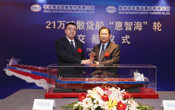 31 December 2020 On 19th December, COSCO SHIPPING Heavy Industry (Yangzhou) Co., Ltd. delivered its first 210,000 bulk carrier "HUI ZHI HAI" N946. As a major project of the COSCO SHIPPING GROUP, COSCO SHIPPING Heavy Industry (Yangzhou) Co., Ltd. Has worked closely with shipowners, LR/CCS classification Society and SDARI to achieve the highest qualification. Finally the ship "Hui Zhi Hai" completed all the sea trial projects in 42 hours, its one day ahead of schedule, and reached the high quality delivery status in the shortest time, which won the praise of the owner.