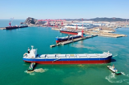 25-04-2022 On April 1st, DALIAN COSCO KHI Ship Engineering Co., Ltd. (DACKS) DE113 (82,000 DWT bulk carrier) was delivered on time by online signing. The ship has a total length of 228.9 meters, molded breadth of 32.24 meters, moulded depth of 20.2 meters, and a draft of 14.5 meters. It has the characteristics of low carbon and green, strong cargo suitability, low fuel consumption and high intelligence, and is one of the most popular bulk carriers in the current market.