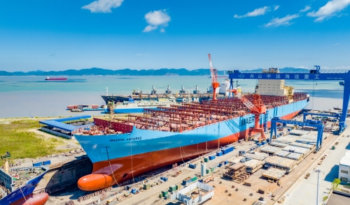 22-08-2022 On August 14, the large container ship Maersk Antares which completed all the repair tasks in CHI (Zhoushan), was successfully moved to berth. Maersk Antares is a 12,000 TEU container ship of Maersk Altair class series, with an L*B*D size of 337.56m*45.6m*27.2m. The main works of repair in the shipyard are 15-year special inspection, Panamax mooring modification, new ballast water treatment device, energy-saving device, new deflector, repair of more than 70 hatch covers, new ballast tank structure and silicone paint on the outer plate. Although the works were extensive and the task was arduous, CHI (Zhoushan) still managed to complete them in quality and quantity.