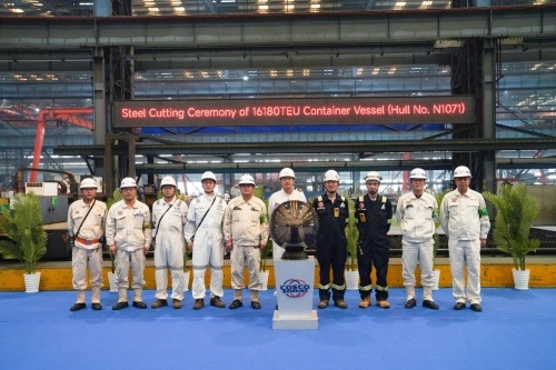 31 October 2023 On the morning of 18th October, N1071, the first 16,180 TEU methanol dual-fuel container vessel of COSCO Shipping Lines constructed by CHI (Yangzhou), was ignited in the joint workshop of the enterprise and entered into the production and construction stage. This vessel is the first methanol dual-fuel large container ship in China, and it is the key for COSCO Shipping to meet the demand of green shipping and promote low-carbon fuel ships. The ship has an L*B size of 367 m*51 m and a maximum loading capacity of 16,180 TEU. The ship meets the EEDIIII energy efficiency index, which can reduce carbon emissions by about 8.9% total. CHI (Yangzhou) together with relevant parties, completed the design work of methanol dual-fuel retrofit, and solved methanol fuel filling, storage, supply and equipment. The vessels are equipped with the world's first set of domestic WinGD methanol dual-fuel main engine, methanol dual-fuel generator, the world's first set of ALFALAVAL methanol dual-fuel boiler, as well as methanol fuel barge and supply system.