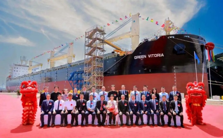 July 2024 On June 27th, CHI (Dalian) held a naming ceremony for the delivery of GREEN VITORIA, a series of 77,000 dwt multi-purpose pulp vessel built for CBN Gold Chartering. This vessel is the seventh 77,000 dwt multi-purpose pulp vessel delivered by Dalian CHI. "GREEN VITORIA" has an overall length of 225.00 meters, a beam of 32.26 meters, a depth of 21.00 meters and a design speed of 15 knots. The ship's cargo hold is well sealed and dry, which can fully guarantee the quality and safety of pulp cargo transportation. This series of vessels meets the highest international standards for NOx emissions (Tier III), in line with the latest Green Ecological Ship Specification (GES) from the China Classification Society (CCS). Additionally, the vessels' vibration and noise levels comply with the CCS GES, which has recently come into effect. Furthermore, the Energy Efficiency Design Index (EEDI) of these vessels exceeds the requirements set by the International Maritime Organization (IMO) Phase III.