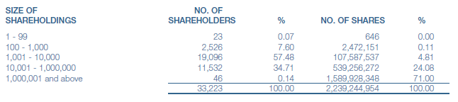 Distribution Of Holders Of Shares By Sizes Of Shareholdings As At 7 March 2016