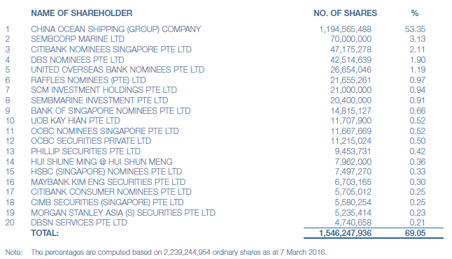 Top Twenty Holders Of Shares As At 7 March 2016