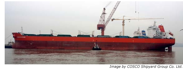 On December 6, the 80,000 dwt bulk carrier N267, being built for Vanship Holdings (HongKong), was successfully named after 'SHINYO AYUSH' in COSCO Dalian Shipyard. Mr. Alexander Slee, the General Manager of Vanship Holdings, Mr. Yan Chengxiang, Deputy General Manager of COSCO Shipyard Group and General Manager of COSCO Dalian Shipyard, and key representatives from the ship owner and the shipyard attended the milestone event.