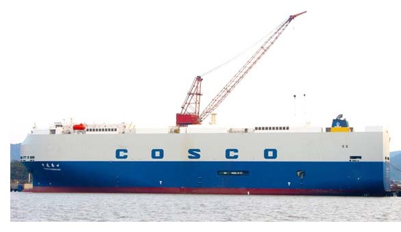 The vessel is the first in the series of two 5000 unit PCTCs, jointly designed by COSCO Zhoushan Shipyard and Shanghai Design Institute, and registered with NK Class.