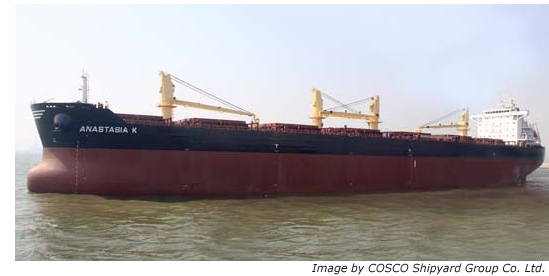 After three days of sea trials, ANASTASIA K, the 80,000DWT bulk carrier, being built for CHARTERWELL MARITIME SA, returned smoothly to COSCO Dalian Shipyard on 22 March.
