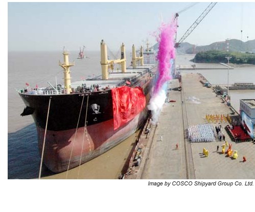 COSCO Zhoushan Shipyard successfully delivered the second of the 57,000DWT bulk carrier series on the 20th Oct. The 57,000DWT bulk carrier was constructed for COSCO Bulk Carrier Co. Ltd. Mr. Lv Zuohan, the Deputy Managing Director of COSCO Bulk Carrier, and Mr. Dong Yezong, the General Manager of COSCO Zhoushan Shipyard, signed the Delivery and Acceptance Agreement during the delivery ceremony.
