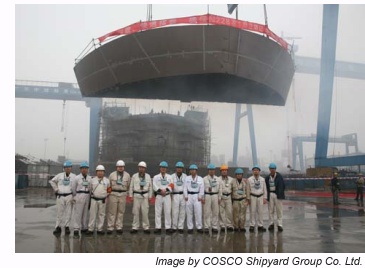The 57,000DWT bulk carrier series, N228, being built for Greek company DYNACOM, is now taking shape. This is the ninth of the 57,000DWT bulk carrier series being built in COSCO Guangdong Shipyard.