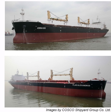 "FLAG ALEXANDROS" (N181) and "ANNA BO" (N182) was delivered in COSCO Guangdong Shipyard on 12th and 22nd January respectively.