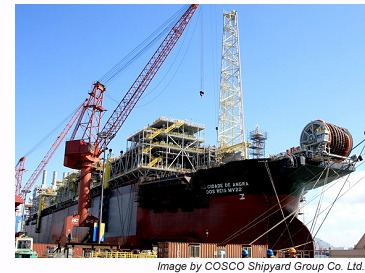 The "CO2 REMOVE" function module was successfully hoisted on the VLCC to FPSO conversion vessel"SUNRISE IV" in COSCO Dalian Shipyard on 11th March. Such a hoist set a record of the shortest time and largest tonnage for super module hoisting in COSCO Dalian Shipyard.