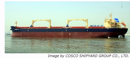 The BANOS A is the last vessel in the three 57,000DWT bulk carrier series built for Greek EFSHIPPING. It took only 83 days from her launch to her delivery. The whole-vessel integrity has improved greatly and the improved construction period for each vessel has beaten the previous record for similar vessels in COSCO Dalian Shipyard.