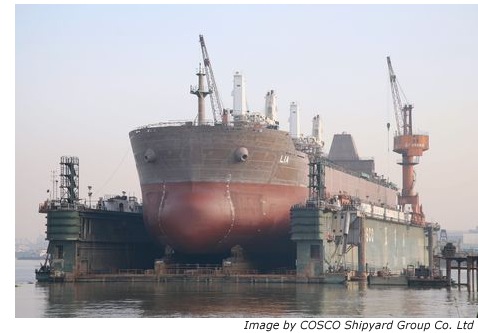 On December 8, N232, the 57,000 dwt bulk carrier, being built for the Greek owner DYNACOM, was towed and slid onto the floating dock of 'Cuihuashan' in COSCO Guangdong Shipyard, smoothly achieving the "whole ship" launching.