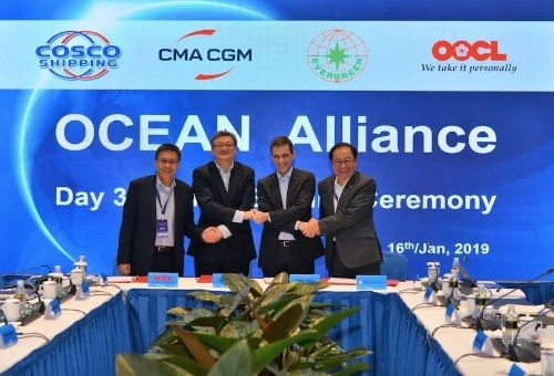 17 January 2019 2019,the OCEAN Alliance Day Three is improving and optimizing global network based on 2018 Day Two product, intends to deploy estimated total carrying capacity of 3.86 million TEUs. The OCEAN Alliance will provide broader coverage, better and more stable service in following trade lanes: • 19 Transpacific services (with 12 Asia - West Coast North America services, 7 Asia - East Coast North America and U.S. Gulf services) • 7 Asia - Europe services • 5 Asia - Mediterranean services • 3 Transatlantic services(including one Non-OA loops) • 4 Asia – Middle East services • 2 Asia - Red Sea services 7 Asia - Europe services: The OCEAN Alliance keep optimizing the service loops, by providing 7 service loops, faster transit time, better port pair coverage, more stable service and more selections is available to our customers. Zeebrugge, Rotterdam, Gdansk as hub can further extend to Spanish Bilbao, Ireland, and Baltic region like Sweden, Denmark, Poland, Finland, Lithuania and Russia. AEU1: Shanghai-Ningbo-Xiamen-Yantian-Singapore-SUEZ Canal-Felixstowe-Zeebrugge-Gdansk-Wilhelmshaven-Piraeus-SUEZ Canal-Port Kelang-Hong Kong-ShanghaiZ AEU3: Tianjin-Dalian-Qingdao-Shanghai-Ningbo-Singapore--SUEZ Canal-Piraeus-Rotterdam- Hamburg-Antwerp- Rotterdam-SUEZ Canal-Shanghai-Tianjin AEU7: Xiamen-Nansha-Hong Kong-Yantian-Cai Mep-Port Kelang-Suez Canal-Piraeus-Hamburg-Rotterdam-Zeebrugge-Felixstowe-Suez Canal-Singapore-Yantian-Xiamen AEU2: Busan-Ningbo-Shanghai-Yantian-Singapore-Suez Canal-Algeciras-Southampton-Dunkirk-Hamburg-Rotterdam- Southampton -Le Havre-Malta-SUEZ Canal-Jebel Ali-Port Kelang-Xiamen-Busan AEU6: Qingdao-Ningbo-Shanghai-Yantian-Cai Mep-Singapore-SUEZ Canal-Le Havre-Rotterdam-Hamburg-Antwerp-Le Havre-Algeciras-SUEZ Canal-Port Kelang-Nansha-Qingdao AEU5: Kaohsiung-Qingdao-Ningbo-Shanghai-Taipei-Yantian-Tanjung Pelepas-SUEZ Canal-Rotterdam-Felixstowe-Hamburg-Rotterdam-SUEZ Canal-Colombo- Tanjung Pelepas -Kaohsiung AEU9: Shanghai-Ningbo-Kaohsiung-Shekou-Colombo-SUEZ Canal-s-Antwerp- Hamburg-Rotterdam- SUEZ Canal-Port Kelang-Shanghai