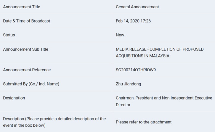 COSCO SHIPPING Expands In Malaysia To Create A Consolidated Logistics Platform And Provide Its Customers With A One-Stop Integrated Service Feb 14, 2020 Attachment China COSCO Shipping Corporation Limited, press release