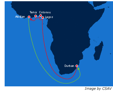CSAV Group is pleased to announce the introduction of West Africa Explorer restarting CSAV activities at West Africa and providing connectivity to this area with other regions, such as Asia, Middle East and East Coast of South America among others.