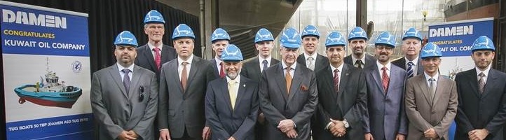 A symbolic keel-laying ceremony on the 17th of April 2013 in Gorinchem, The Netherlands, officially launched the construction phase of 14 Damen ASD Tugs for Kuwait Oil Company (KOC). The series consist of two types, being 9 tugs of Damen’s recently launched 3212 model and 5 units of the well-known 2810 design, with 80 and 50 tons of bollard pull respectively.