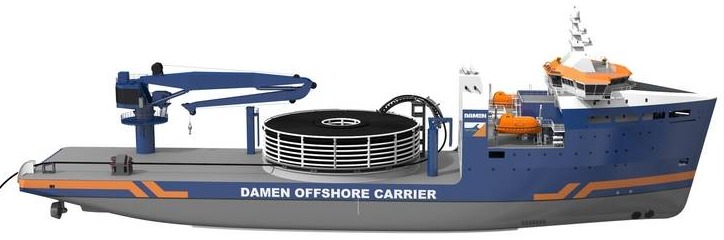 Strategy The cable-laying vessel forms part of the Van Oord strategy to offer a complete package for the construction of offshore wind farms as an EPC contractor. Furthermore, this contract endorses Van Oord’s drive to continuously serve new and existing markets by investing in new technology and marine ingenuity. Damen Offshore Carrier 7500 The new Van Oord cable layer is based on the Damen Offshore Carrier, a new multipurpose vessel design with a flush working deck, Heavy Lift or RoRo transport as well as offshore installation capabilities suitable for multiple markets. To this purpose, a large number of (offshore) installation equipment can be mounted on the vessel and the design can be adapted to create a dedicated ship, such as the vessel desired by Van Oord. Damen Shipyards Group press release |