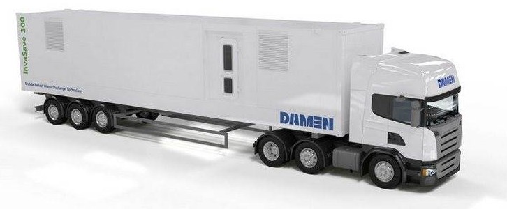 Damen has developed a unique InvaSave Mobile Ballast Water Discharge Technology which enables port based ballast water management. The mobile solution means ballast water only needs treating at the point of discharge, in contrast to fixed onboard BWT installations that also need to treat ballast water at intake.