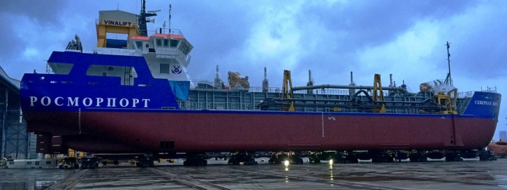 First Trailing Suction Hopper Dredger in 30 years 20 November 2015 This month Damen Shipyards Group launched ice class Trailing Suction Hopper Dredgers TSHD 2000 for Russian Port Agency FSUE “Rosmorport”. Song Thu Corporation shipyard in Da Nang, Vietnam is building the Damen TSHD 2000 under Russian Maritime Register of Shipping (RMRS). Following delivery, the 2,000 m³ Severnaya Dvina will maintain navigational depths and provide safe shipping in the Arkhangelsk Seaport basin and approaches. The launching ceremony on 9 November was attended by the Consul-General of the Russian Federation in Da Nang Andrey Brovarets, FSUE “Rosmorport” General Director Andrey Tarasenko, representatives from RMRS, Damen and from Damen's business cooperation Song Thu Corporation shipyard. Video by Damen Shipyards Group