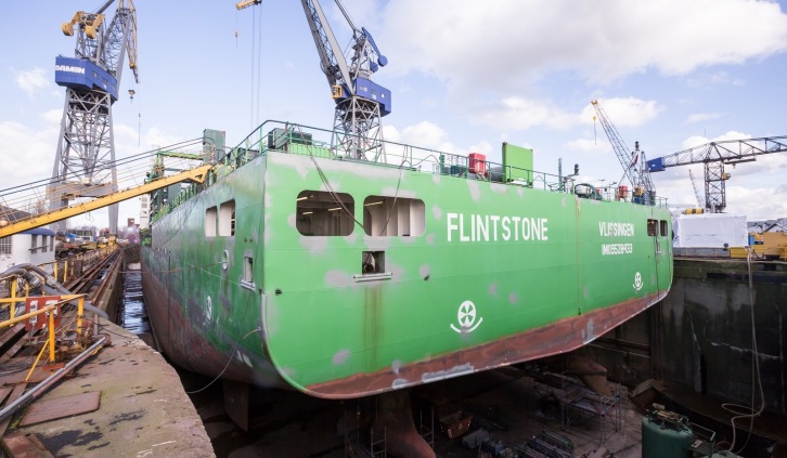 The fallpipe vessel 'Flintstone' underwent a comprehensive programme of maintenance. Images by Damen Shipyards Group. Damen Shipyards Group press release |