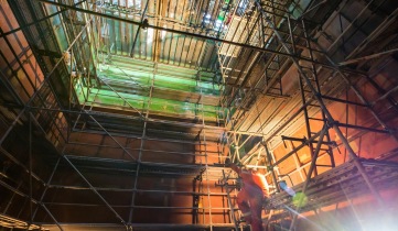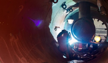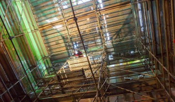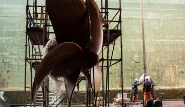 The Flintstone underwent a comprehensive programme of maintenance, surveys and testing in the run-up to her Special Survey, spending a total of 28 days in drydock at Damen Shiprepair Amsterdam (DSAm). Of the many activities that took place, the most complex with regard to the vessel itself was the refurbishment of the moon pool doors. These were lowered and supported on the floor of the drydock in order to undergo extensive maintenance, including the replacement of the main bearings. The unexpected and large scale of the machining work required made this a very challenging job to carry out within the original time allowed Other activities included the overhaul of all the thrusters together with the forward anchor winches and a wide range of other tasks relating to the water lines, fall pipes, ROV transport and storage, and other equipment. While in DSAm the Huisman crane and tower were overhauled by the manufacturer. The yard provided full support including machining and supplying various components, and provided a berth for the extra time required to complete the project. Project manager Arnold Bregman commented, “This was a very challenging project given the extent of additional works that became apparent as we progressed. However, Damen Shiprepair Amsterdam was the ideal location for this with all the necessary facilities available on site. We were also able to allocate additional manpower and schedule extra shifts. That, together with excellent communication and cooperation between all the parties concerned, ensured that we were able to complete our part of the project within the original time specified.” Bas Peeters, Vessel Manager at Tideway, added: “Damen Shiprepair Amsterdam provided us with the skills, cooperation and flexibility that we seek in a repair yard for a vessel like Flintstone.”