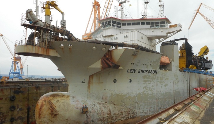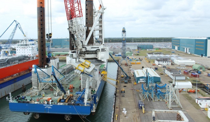 27 March 2017 Jack-up vessel Vole au vent and TSHD Leiv Eiriksson Damen Shiprepair & Conversion (DSC) has recently completed works in Vlissingen and Brest on two major vessels in the fleet of dredging and marine construction specialist Jan de Nul Group. One of these is the Vole au vent, a 140-metre jack-up vessel built specifically for the installation of the latest generation of offshore wind turbines. The other is the trailing suction hopper dredger Leiv Eiriksson. Both vessels are among the largest in their classes, anywhere in the world. Vole au vent at Damen Shiprepair Vlissingen The jack-up vessel Vole au vent arrived at Damen Shiprepair Vlissingen (DSVI) late in 2016 having spent the summer working on the Nobelwind offshore wind farm off the coast of Belgium. She came to DSVl for modifications necessary for her second phase on the Nobelwind project; the installation of the WTG scope. These required the demobilisation of her existing equipment used for the foundation campaign and the installation of a new configuration for the WTG installation phase. Over the course of two weeks, her 3,400m² main deck was cleared of equipment and temporary structures and restored to its clean, completely flush layout. This allows it to accommodate wind turbine installation equipment and components, towers and blades for its next deployment off the coast of Belgium. DSVl also fabricated and installed some new deck structures including grillages for the transport of the WTG towers and nacelles. Leiv Eiriksson at Damen Shiprepair Brest On 16 February, Jan de Nul Groups 223-metre trailing suction hopper dredger Leiv Eiriksson departed from Damen Shiprepair Brest after a three-week maintenance programme. This followed an 18-month assignment on a large-scale land reclamation project in Nigeria. The works included replacement of the 1700mm discharge lines, changing the power cables for the suction arms, fresh paintwork, the assisting of specialist sub-contractors with steering gear, propulsion and thruster repairs, valve repairs and minor steel works. With a hopper volume of 46,000m³ and a DWT of 78,500 tonnes, the Leiv Eiriksson is one of the world’s largest dredgers. Carlos de Vliegere, sales manager at DSC, commented: “Jan de Nul Group is a valued customer of the Damen Shipyards Group and we are delighted to have been able to deliver the services they required for these impressive vessels within the timescales required.” Other recent projects for Jan de Nul Group have included works last year on the multi-purpose vessel Isaac Newton at Damen Shiprepair Vlissingen and on the trailing suction hopper dredger Taccola at Damen Shiprepair Amsterdam.