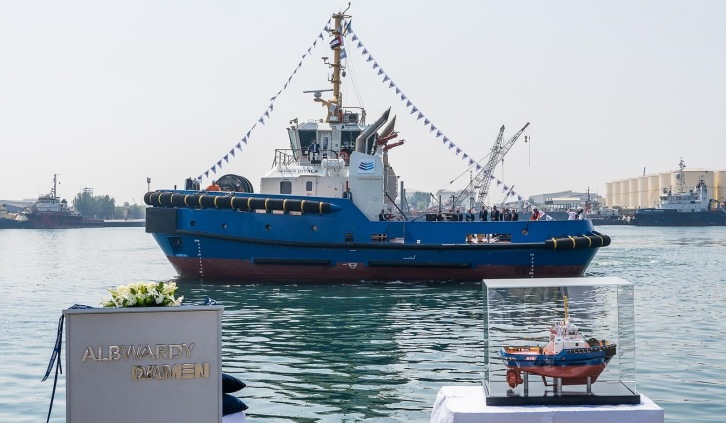 Cutting-edge Damen tugs will serve partnership between Jawar Al Khaleej Shipping and General Company for Ports of Iraq 4 November 2019 On 20th October, a handover ceremony was held at Albwardy Damen, in Sharjah, UAE, marking Damen’s delivery of thirteen tugs to Jawar Al Khaleej Shipping. The tugs will be operated at various offshore terminals in Iraq, in a joint cooperation between Jawar Al Khaleej Shipping and General Company for Ports of Iraq (GCPI). The contract for the order was signed end of March 2019. Damen has delivered all the vessels within a seven month period. Damen was able to deliver the thirteen vessels quickly, modified to the requirements of its client, thanks to its philosophy of standardised shipbuilding, which ensures the fast delivery of proven vessels. The thirteen vessel order consisted of four ASD Tugs 2813, two ASD Tugs 3212, three RSD Tugs 2513 – all state-of-the-art vessels from Damen’s Next Generation Tugs series – three Stan Tugs 2208 and a Shoalbuster 2609. The ASD tugs are fully equipped, including FiFi 1 and an escort towing notation. Furthermore, the contract includes spare part packages, training, a computerised planned maintenance system and a remote monitoring system on board of all tugs. During the ceremony seven of the thirteen tugs where lined up at the Albwardy Damen facility in Sharjah, UAE, three tugs are already in operation and the remaining three boats are currently on voyage from the yard to the client. Albwardy Damen has played a crucial role in outfitting the tugs as per the client’s requirements and providing training to all crew prior to delivery. The vessel order will serve to fulfil a 20 year contract between Jawar Al Khaleej Shipping and GCPI. The contract gives Jawar Al Khaleej Shipping responsibility for marine service at the oil terminals. With this agreement, the two parties will secure Iraq’s ability to handle the constant flow of tankers entering and leaving the country. Jawar Al Khaleej has been successfully providing marine services in Iraq for the last ten years, and has a modern fleet of a Damen Stan Tugs, three Damen ASD Tugs 3213 and a Fast Crew Supplier 5009. The existing Damen fleet has proven to be extremely reliable, which is essential considering the remote offshore location and harsh environmental conditions in which the vessels must operate. A reliable fleet is vital for providing safe and uninterrupted operations at the offshore oil terminals. Jawar Al Khaleej chairman Eng. Baydaq Al Jazaeri, speaking during his speech at the handover ceremony, said, “This Mission was not an easy one, it was a great challenge. However, we had a big confidence in our partner in business, Damen, who met and exceeded our expectations in making it happen despite all challenges. I would like to thank all the Damen team and a special thanks to Mr Bram Langeveld area director Middle East and Mr Pascal Slingerland Damen sales director Middle East for their continuous support and follow-up. Jawar is grateful to GCPI for their confidence in us for such a big contract, which is related to the economy of a big country such as Iraq.” Pascal Slingerland added, “It has been an honour to extend our long lasting relationship with Jawar Al Khaleej Shipping and to support Jawar in this prestigious contract with GCPI. On behalf of Damen I congratulate both parties on their cooperation and on the delivery of their new tugs. This delivery includes some of the most state-of-the-art tug technology on the market, including cutting edge innovations in safety, design and remote monitoring. We have every confidence that these thoroughly fit for purpose tugs will meet the offshore terminal requirements and enables save and reliable operation. Video by Damen Shipyards Group.