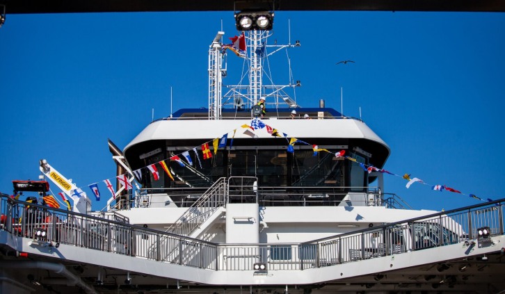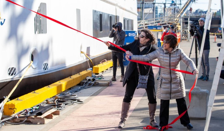 BC Ferries held a naming ceremony for the first of its two Island Class Ferries at Victoria’s Point Hope Maritime. Image by Damen Shipyards Group. Damen Shipyards Group press release